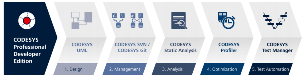 CODESYS Professional Developer Edition(PDE) 是 CODESYS 開 發(fā) 的 一 款 專 業(yè) 的 應(yīng) 用 程 序 優(yōu) 化 工 具。CODESYS Professional Developer Edition基于C/C++ 標(biāo)準(zhǔn),包含UML / SVN / Git / Static Analysis / Profifiler / Test Manager六大工具。六大工具作為套件整體銷售,每個工具都可以單獨(dú)使用。CODESYS Professional Developer Edition 作為按年和工作站的形式訂閱使用。