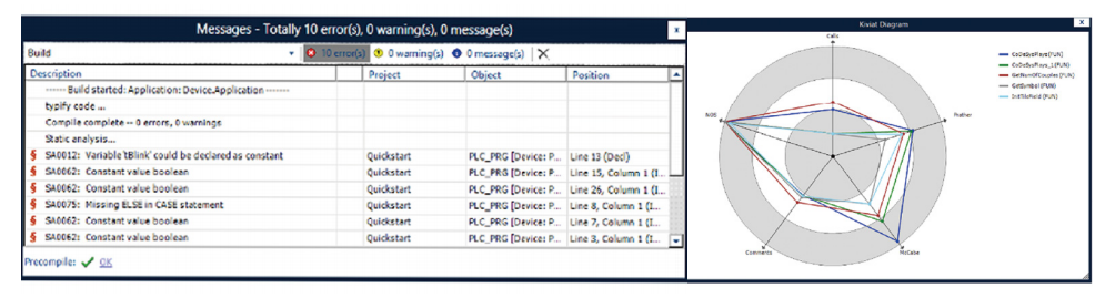 · CODESYS Static Analysis:源代碼審查,以確保符合預(yù)定義的規(guī)則并提供代碼質(zhì)量的關(guān)鍵數(shù)字。