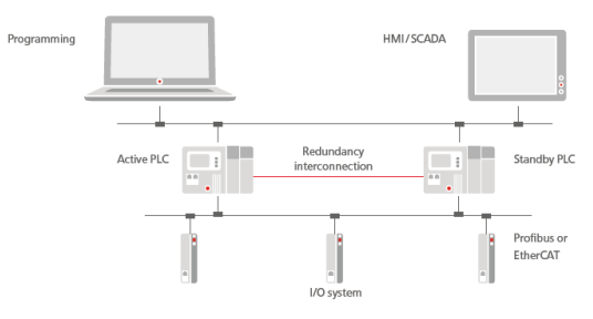 CODESYS Redundancy 允許將兩臺CODESYS控制器連接到同一系統(tǒng)中,兩臺控制器運行同樣的應(yīng)用程序,如果其中的一臺控制器宕機,另一臺控制器將在不打斷控制過程的情況下接管控制任務(wù)。
