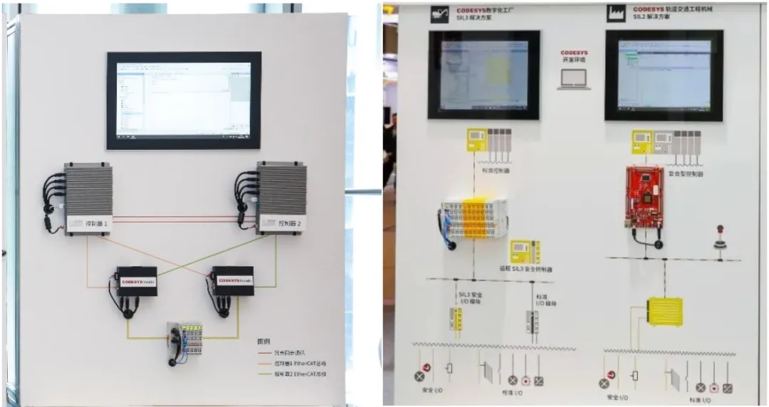 國內自主CPU的引領者——龍芯中科展示了在其3A5000 CPU中運行CODESYS SoftMotion CNC + Robotics 軟件模塊的 IPC 產品及行業(yè)解決方案,演示了通過在工業(yè)PC中部署運行 CODESYS 智能自動化編程開發(fā)平臺,實現(xiàn)了使用一套 CODESYS 軟件工具包套件就可以實現(xiàn)一個完整的自動化控制解決方案,即基于 CODESYS 軟件平臺可以實現(xiàn):邏輯控制 (PLC) 、運動控制 ( Motion Control )及 CNC 控制、機器人控制、人機界面 (HMI) 、基于 Web Service 的網絡可視化編程和遠程監(jiān)控、冗余控制 (Redundancy) 和安全控制(Safety)、以及項目開發(fā)與工程協(xié)同管理(SVN)等多個目標和需求。