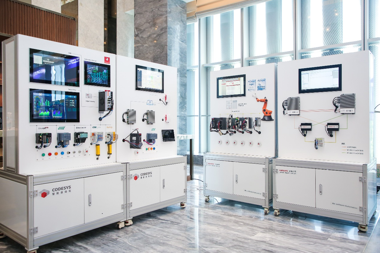 活動期間,Intel(英特爾)、龍芯中科、意法半導體(ST)、恩智浦半導體(NXP)、諾達佳自動化、德克威爾自動化、萬創(chuàng)科技等領軍企業(yè)展示了基于 CODESYS 智能自動化編程開發(fā)平臺的行業(yè)解決方案,其中 Intel(英特爾)展臺的亮點之一是運行了 CODESYS 復雜運動控制編程開發(fā)模塊(CODESYS SoftMotion CNC+Robotics)的虛擬 Tripod 機械手在物流(分揀)行業(yè)中的作業(yè)演示,虛擬Tripod機器人通過使用集成在CODESYS IDE(編程開發(fā)系統(tǒng))中的算法和功能塊在執(zhí)行實時高精確精準作業(yè)的同時,驗證了第十一代智能英特爾® 酷睿? S系列處理器 (Rocket Lake)強大的算力及與 CODESYS Runtime System (工業(yè)級運行時系統(tǒng)軟件)的完美適配。