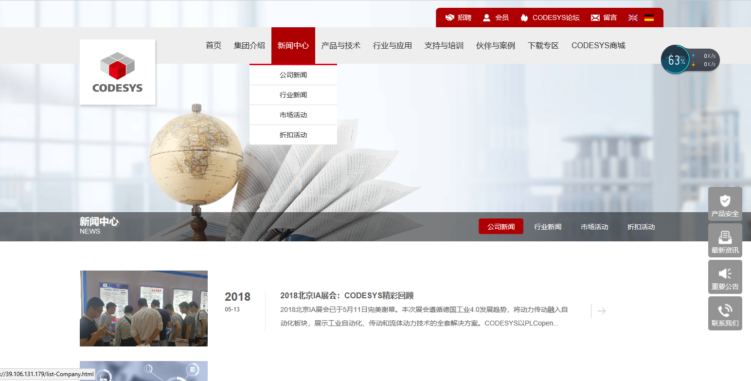 新聞中心:這是您與CODESYS(中國)的互動天地。在這里,CODESYS會告知您最新的行業(yè)新聞、市場活動,為您展現(xiàn)一個動態(tài)的我們。